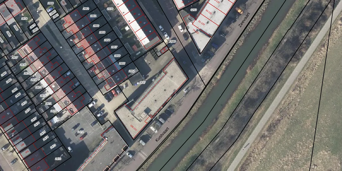 Het perceel waarop Kustvaart 215 staat heeft een oppervlakte van 1190 m². Dit is een zeer groot perceel. De perceeloppervlakte wordt geregistreerd door het Kadaster. Gedetailleerde informatie over de maten van dit perceel kunt u vinden in het rapport Kadastrale kaart met maatvoering van Kustvaart 215.