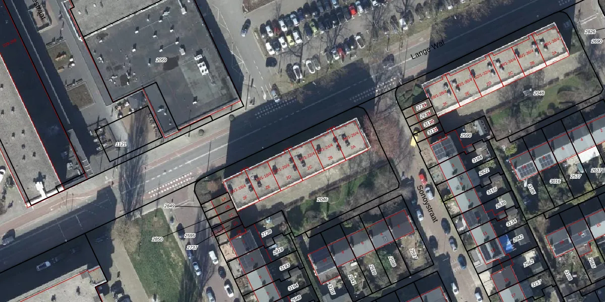 Het perceel waarop Lange Wal 22-1 staat heeft een oppervlakte van 1575 m². Dit is een zeer groot perceel. De perceeloppervlakte wordt geregistreerd door het Kadaster. Gedetailleerde informatie over de maten van dit perceel kunt u vinden in het rapport Kadastrale kaart met maatvoering van Lange Wal 22-1.