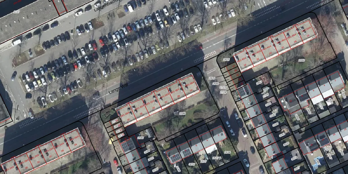Het perceel waarop Lange Wal 36-1 staat heeft een oppervlakte van 1596 m². Dit is een zeer groot perceel. De perceeloppervlakte wordt geregistreerd door het Kadaster. Gedetailleerde informatie over de maten van dit perceel kunt u vinden in het rapport Kadastrale kaart met maatvoering van Lange Wal 36-1.