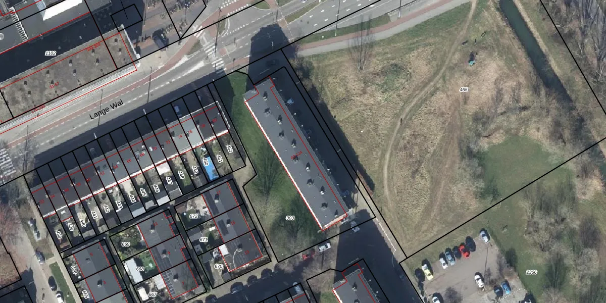 Het perceel waarop Lange Wal 94 staat heeft een oppervlakte van 1750 m². Dit is een zeer groot perceel. De perceeloppervlakte wordt geregistreerd door het Kadaster. Gedetailleerde informatie over de maten van dit perceel kunt u vinden in het rapport Kadastrale kaart met maatvoering van Lange Wal 94.