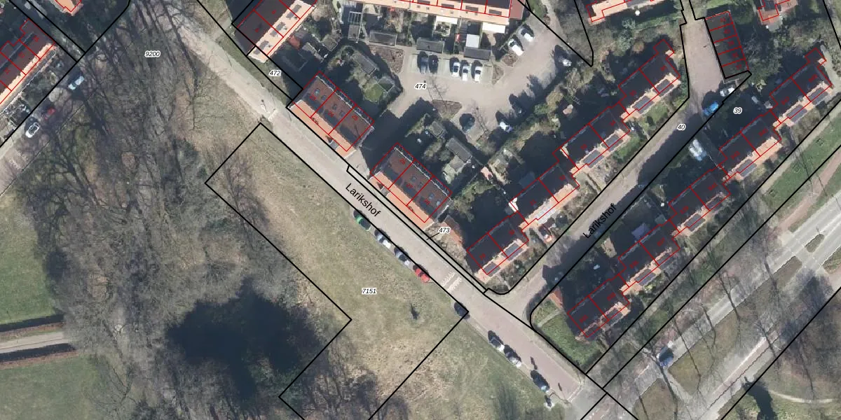 Het perceel waarop Larikshof 28 staat heeft een oppervlakte van 5415 m². Dit is een zeer groot perceel. De perceeloppervlakte wordt geregistreerd door het Kadaster. Gedetailleerde informatie over de maten van dit perceel kunt u vinden in het rapport Kadastrale kaart met maatvoering van Larikshof 28.