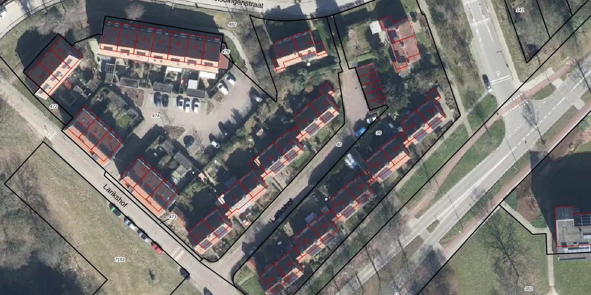 Het perceel waarop Larikshof 34 staat heeft een oppervlakte van 5415 m². Dit is een zeer groot perceel. De perceeloppervlakte wordt geregistreerd door het Kadaster. Gedetailleerde informatie over de maten van dit perceel kunt u vinden in het rapport Kadastrale kaart met maatvoering van Larikshof 34.
