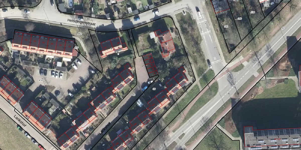Het perceel waarop Larikshof 37 staat heeft een oppervlakte van 2845 m². Dit is een zeer groot perceel. De perceeloppervlakte wordt geregistreerd door het Kadaster. Gedetailleerde informatie over de maten van dit perceel kunt u vinden in het rapport Kadastrale kaart met maatvoering van Larikshof 37.
