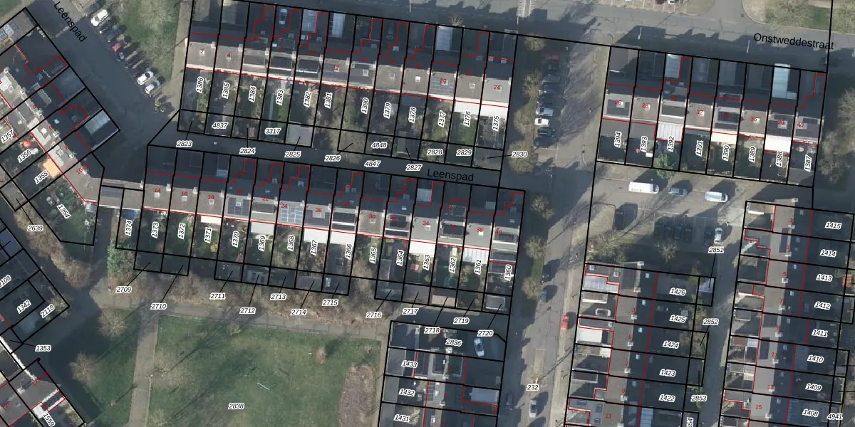 Gebruik de zoekbalk of klik op een perceel voor informatie over de adressen binnen dit perceel.