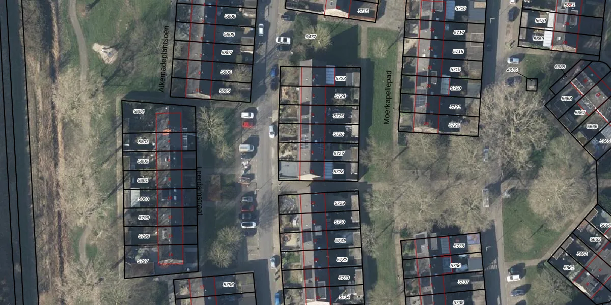 Gebruik de zoekbalk of klik op een perceel voor informatie over de adressen binnen dit perceel.