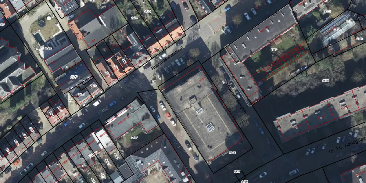 Het adres is gelegen op perceel 7925 in de sectie R en de kadastrale gemeente Arnhem. De kadastrale aanduiding is aldus AHM01-R-7925. Het perceel is kleiner dan gemiddeld in Arnhem. Het perceel is 1465 m² groot, terwijl het gemiddelde ligt op 2519,97 m². Het kleinste perceel in de kadastrale gemeente is 0 m² groot. De grootste perceeloppervlakte is 1,57 km². Op het perceel zijn 56 adressen aanwezig. De huidige grenzen van het perceel zijn digitaal in de Basisregistratie Kadaster (BRK) geregistreerd op 28-07-2010.