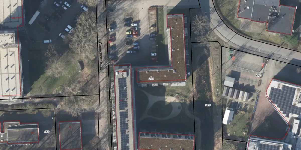 Het perceel waarop het adres ligt is AHM03-AC-9469. De afkorting 'AHM03' staat voor kadastrale gemeente Arnhem. De oppervlakte van het perceel is 6030 m². Dat is groter dan gemiddeld in Arnhem, waar de gemiddelde perceeloppervlakte op 651,57 m² ligt. Het kleinste perceel in de kadastrale gemeente is 0 m² groot. De grootste perceeloppervlakte is 14,2 ha. Er zijn 72 adressen aanwezig op het perceel. In de Basisregistratie Kadaster (BRK) werden de grenzen van het perceel geregistreerd op 13-12-2022.