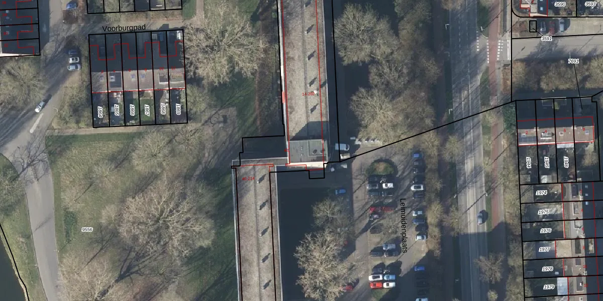 Het perceel waarop Leimuidenplaats 172 staat heeft een oppervlakte van 3600 m². Dit is een zeer groot perceel. De perceeloppervlakte wordt geregistreerd door het Kadaster. Gedetailleerde informatie over de maten van dit perceel kunt u vinden in het rapport Kadastrale kaart met maatvoering van Leimuidenplaats 172.