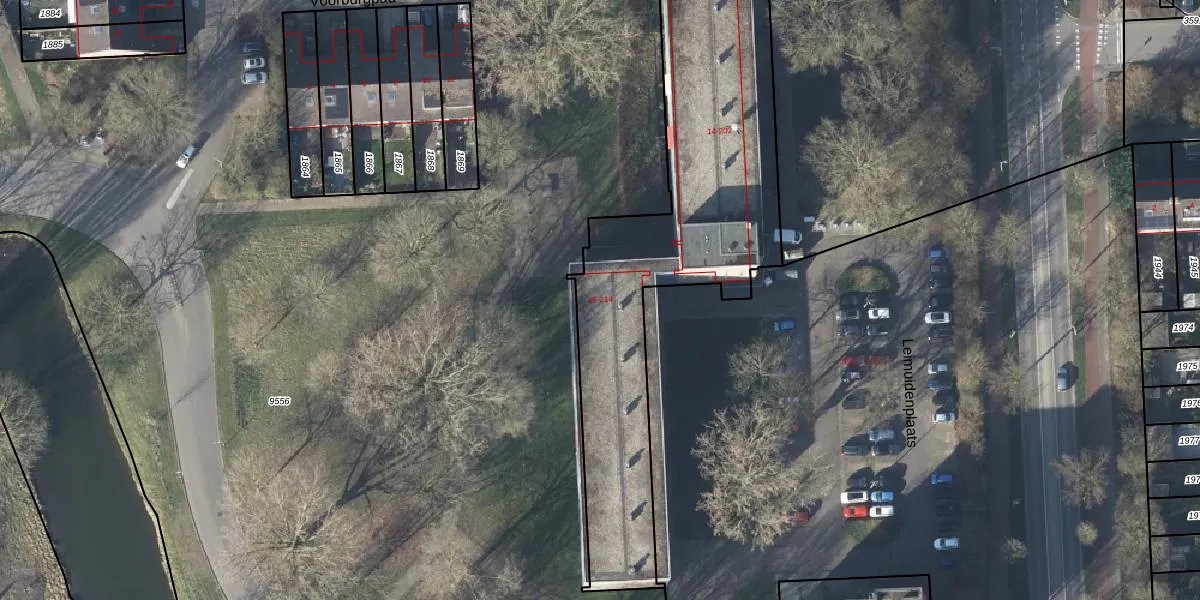 Het perceel waarop Leimuidenplaats 184 staat heeft een oppervlakte van 3600 m². Dit is een zeer groot perceel. De perceeloppervlakte wordt geregistreerd door het Kadaster. Gedetailleerde informatie over de maten van dit perceel kunt u vinden in het rapport Kadastrale kaart met maatvoering van Leimuidenplaats 184.