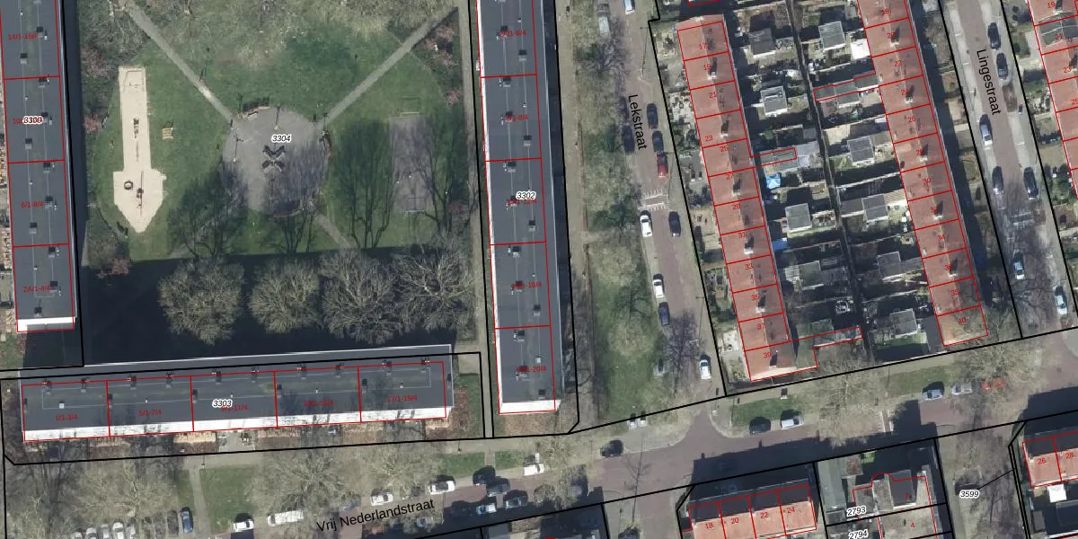 Het perceel waarop Lekstraat 14-1 staat heeft een oppervlakte van 1425 m². Dit is een zeer groot perceel. De perceeloppervlakte wordt geregistreerd door het Kadaster. Gedetailleerde informatie over de maten van dit perceel kunt u vinden in het rapport Kadastrale kaart met maatvoering van Lekstraat 14-1.