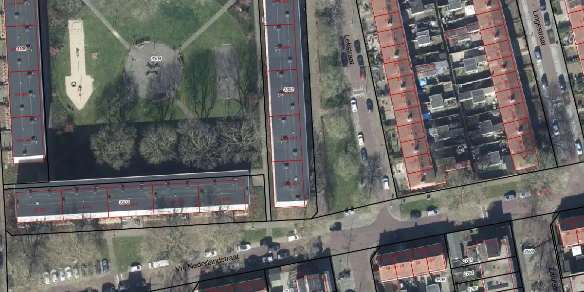 Het perceel waarop Lekstraat 16-2 staat heeft een oppervlakte van 1425 m². Dit is een zeer groot perceel. De perceeloppervlakte wordt geregistreerd door het Kadaster. Gedetailleerde informatie over de maten van dit perceel kunt u vinden in het rapport Kadastrale kaart met maatvoering van Lekstraat 16-2.