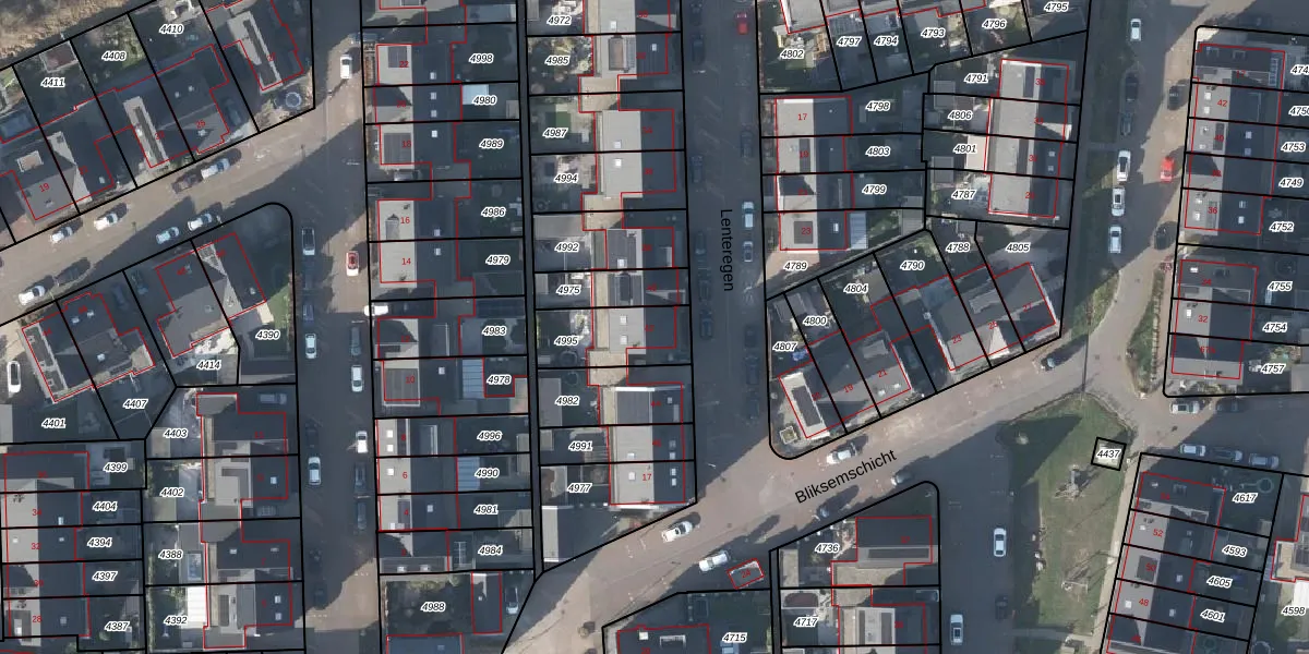 Gebruik de zoekbalk of klik op een perceel voor informatie over de adressen binnen dit perceel.
