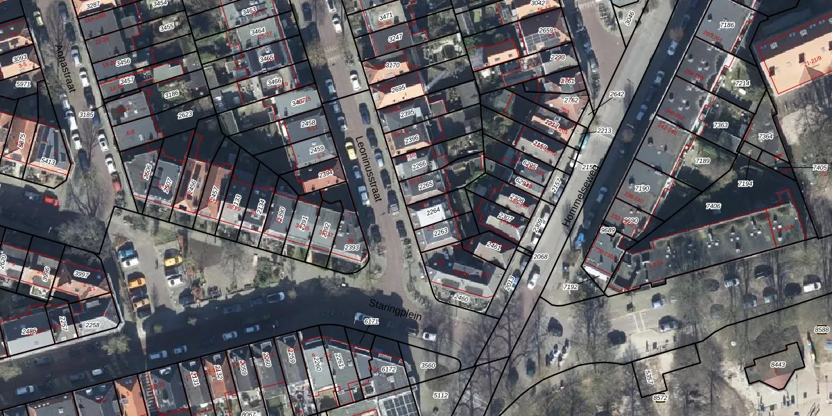 Het perceel waarop Leoninusstraat 6 staat heeft een oppervlakte van 95 m². Dit is een klein perceel. De perceeloppervlakte wordt geregistreerd door het Kadaster. Gedetailleerde informatie over de maten van dit perceel kunt u vinden in het rapport Kadastrale kaart met maatvoering van Leoninusstraat 6.