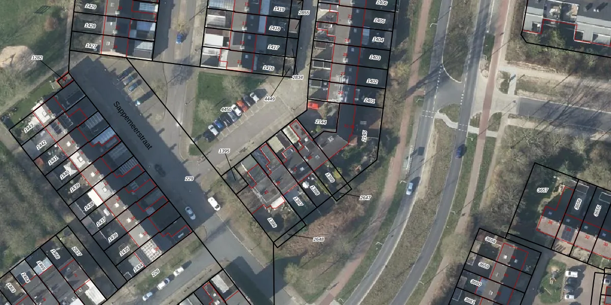 Gebruik de zoekbalk of klik op een perceel voor informatie over de adressen binnen dit perceel.
