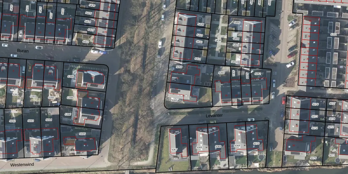 Het perceel waarop Levanter 13 staat heeft een oppervlakte van 361 m². Dit is een groot perceel. De perceeloppervlakte wordt geregistreerd door het Kadaster. Gedetailleerde informatie over de maten van dit perceel kunt u vinden in het rapport Kadastrale kaart met maatvoering van Levanter 13.