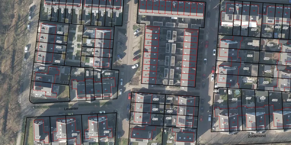 Het perceel waarop Levanter 26 staat heeft een oppervlakte van 2360 m². Dit is een zeer groot perceel. De perceeloppervlakte wordt geregistreerd door het Kadaster. Gedetailleerde informatie over de maten van dit perceel kunt u vinden in het rapport Kadastrale kaart met maatvoering van Levanter 26.