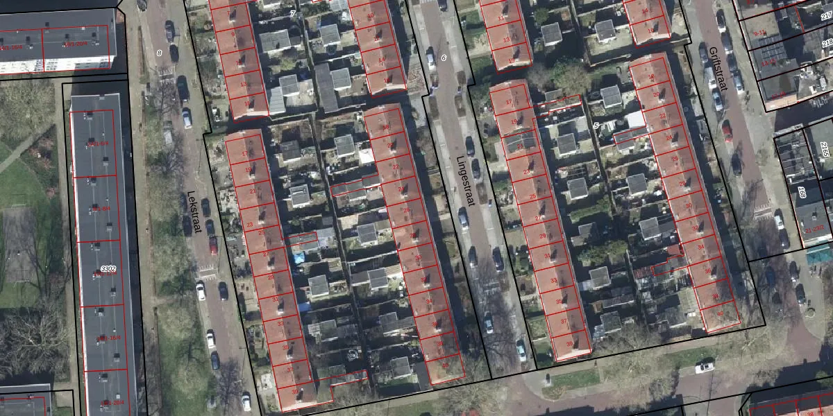 Het perceel waarop Lingestraat 26 staat heeft een oppervlakte van 6310 m². Dit is een zeer groot perceel. De perceeloppervlakte wordt geregistreerd door het Kadaster. Gedetailleerde informatie over de maten van dit perceel kunt u vinden in het rapport Kadastrale kaart met maatvoering van Lingestraat 26.