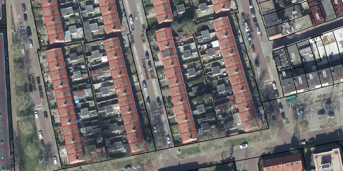 Het perceel waarop Lingestraat 27 staat heeft een oppervlakte van 6310 m². Dit is een zeer groot perceel. De perceeloppervlakte wordt geregistreerd door het Kadaster. Gedetailleerde informatie over de maten van dit perceel kunt u vinden in het rapport Kadastrale kaart met maatvoering van Lingestraat 27.