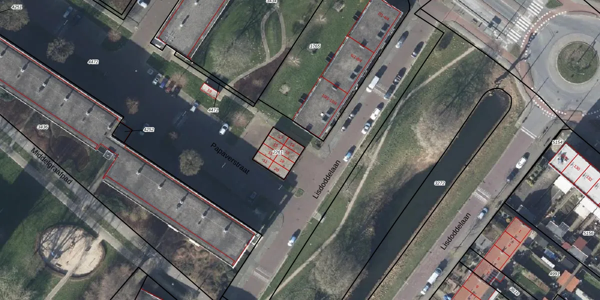 Lisdoddelaan 14 is gelegen op kadastraal perceel AHM01E2261. Deze kadastrale aanduiding is uniek en wordt gebruikt door het Kadaster om eigendomsrechten en andere zakelijke rechten vast te leggen. Het perceel maakt onderdeel uit van de kadastrale gemeente Arnhem.