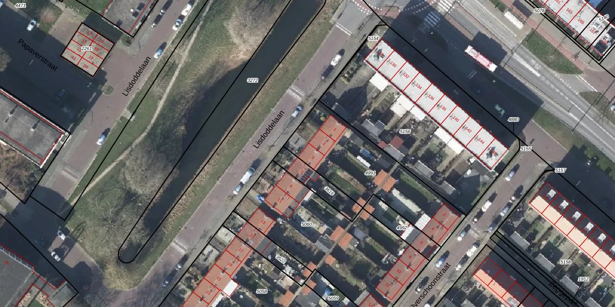 Het perceel waarop Lisdoddelaan 5 staat heeft een oppervlakte van 982 m². Dit is een groot perceel. De perceeloppervlakte wordt geregistreerd door het Kadaster. Gedetailleerde informatie over de maten van dit perceel kunt u vinden in het rapport Kadastrale kaart met maatvoering van Lisdoddelaan 5.