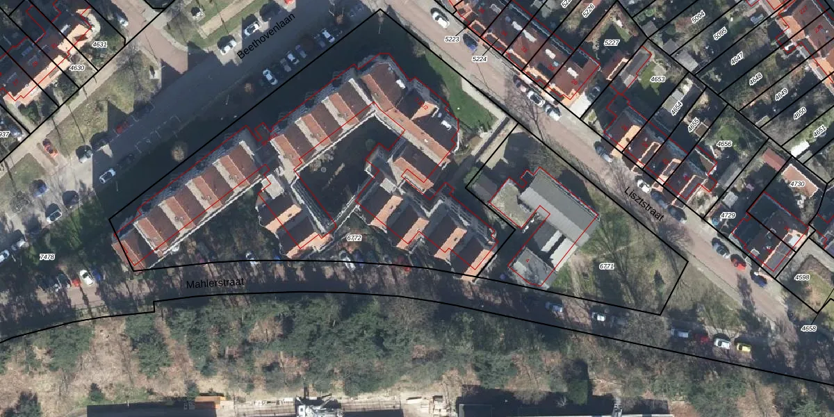 Het perceel waarop Lisztstraat 11-1 staat heeft een oppervlakte van 3740 m². Dit is een zeer groot perceel. De perceeloppervlakte wordt geregistreerd door het Kadaster. Gedetailleerde informatie over de maten van dit perceel kunt u vinden in het rapport Kadastrale kaart met maatvoering van Lisztstraat 11-1.
