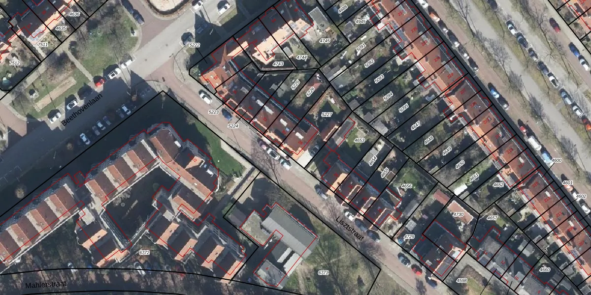 Het perceel waarop Lisztstraat 28 staat heeft een oppervlakte van 314 m². Dit is een groot perceel. De perceeloppervlakte wordt geregistreerd door het Kadaster. Gedetailleerde informatie over de maten van dit perceel kunt u vinden in het rapport Kadastrale kaart met maatvoering van Lisztstraat 28.