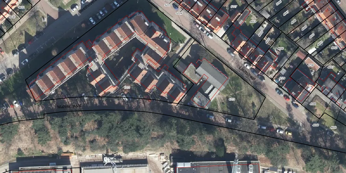 Het perceel waarop Lisztstraat 7-2 staat heeft een oppervlakte van 3740 m². Dit is een zeer groot perceel. De perceeloppervlakte wordt geregistreerd door het Kadaster. Gedetailleerde informatie over de maten van dit perceel kunt u vinden in het rapport Kadastrale kaart met maatvoering van Lisztstraat 7-2.