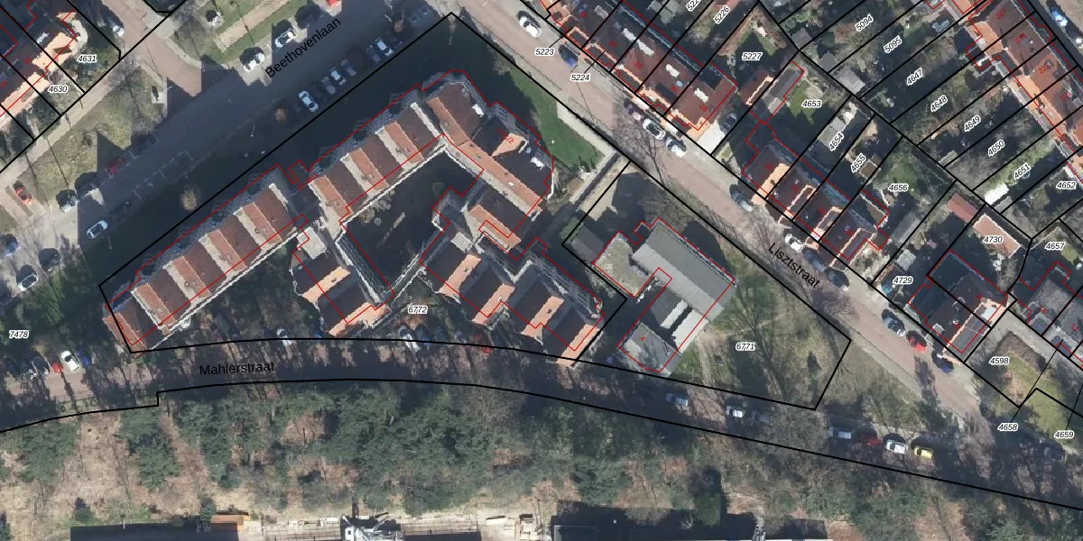 Het perceel waarop Lisztstraat 9-1 staat heeft een oppervlakte van 3740 m². Dit is een zeer groot perceel. De perceeloppervlakte wordt geregistreerd door het Kadaster. Gedetailleerde informatie over de maten van dit perceel kunt u vinden in het rapport Kadastrale kaart met maatvoering van Lisztstraat 9-1.