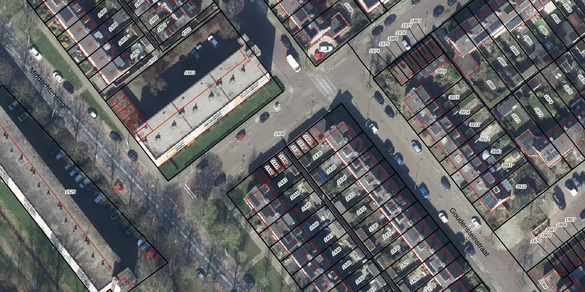 Gebruik de zoekbalk of klik op een perceel voor informatie over de adressen binnen dit perceel.