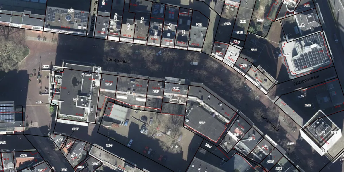 Het perceel waarop Looierstraat 29 staat heeft een oppervlakte van 165 m². Dit is een middelgroot perceel. De perceeloppervlakte wordt geregistreerd door het Kadaster. Gedetailleerde informatie over de maten van dit perceel kunt u vinden in het rapport Kadastrale kaart met maatvoering van Looierstraat 29.