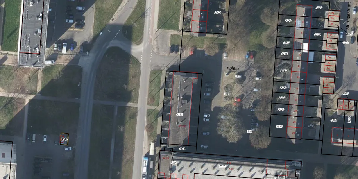Loplein 2-14 is gelegen op kadastraal perceel AHM01W4112. Deze kadastrale aanduiding is uniek en wordt gebruikt door het Kadaster om eigendomsrechten en andere zakelijke rechten vast te leggen. Het perceel maakt onderdeel uit van de kadastrale gemeente Arnhem.