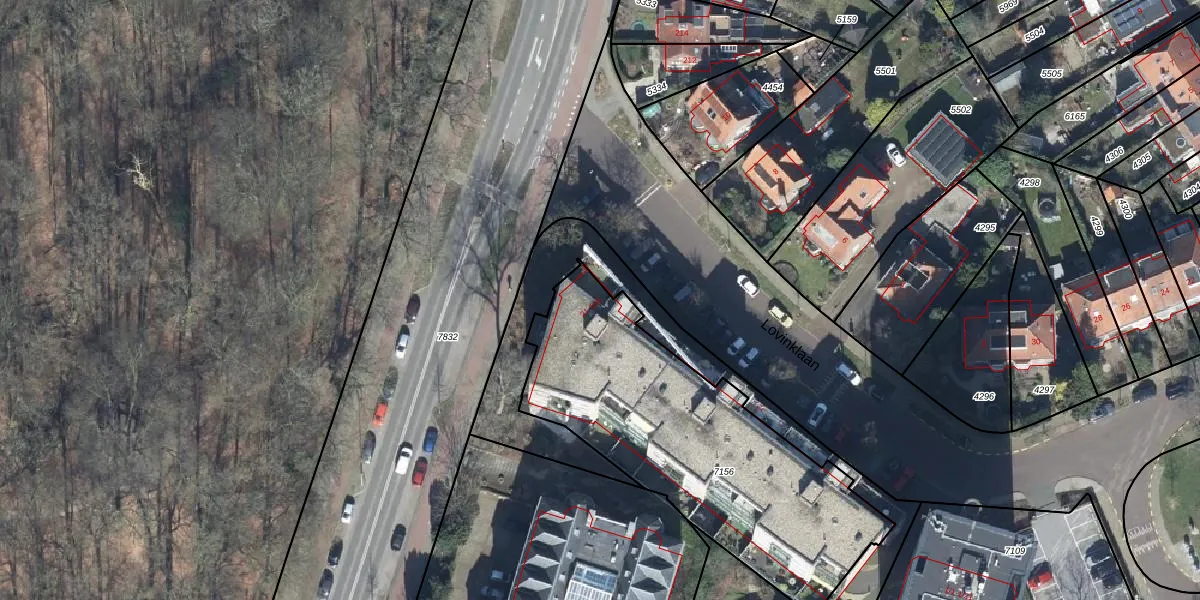 Het perceel waarop Lovinklaan 81 staat heeft een oppervlakte van 1405 m². Dit is een zeer groot perceel. De perceeloppervlakte wordt geregistreerd door het Kadaster. Gedetailleerde informatie over de maten van dit perceel kunt u vinden in het rapport Kadastrale kaart met maatvoering van Lovinklaan 81.