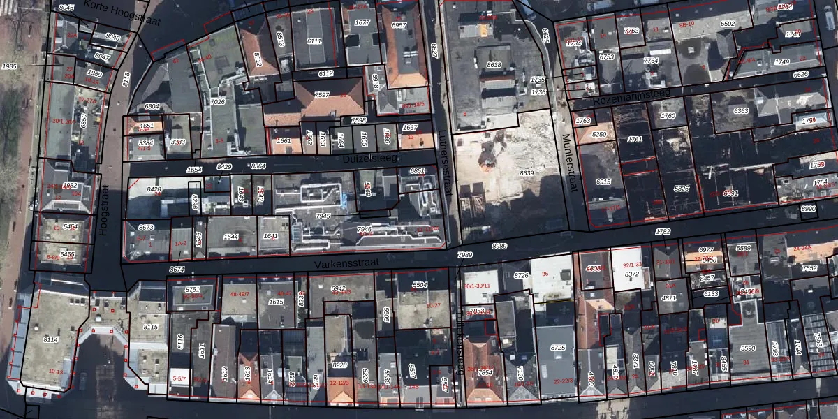 Het perceel waarop Luthersestraat 12-10 staat heeft een oppervlakte van 599 m². Dit is een groot perceel. De perceeloppervlakte wordt geregistreerd door het Kadaster. Gedetailleerde informatie over de maten van dit perceel kunt u vinden in het rapport Kadastrale kaart met maatvoering van Luthersestraat 12-10.