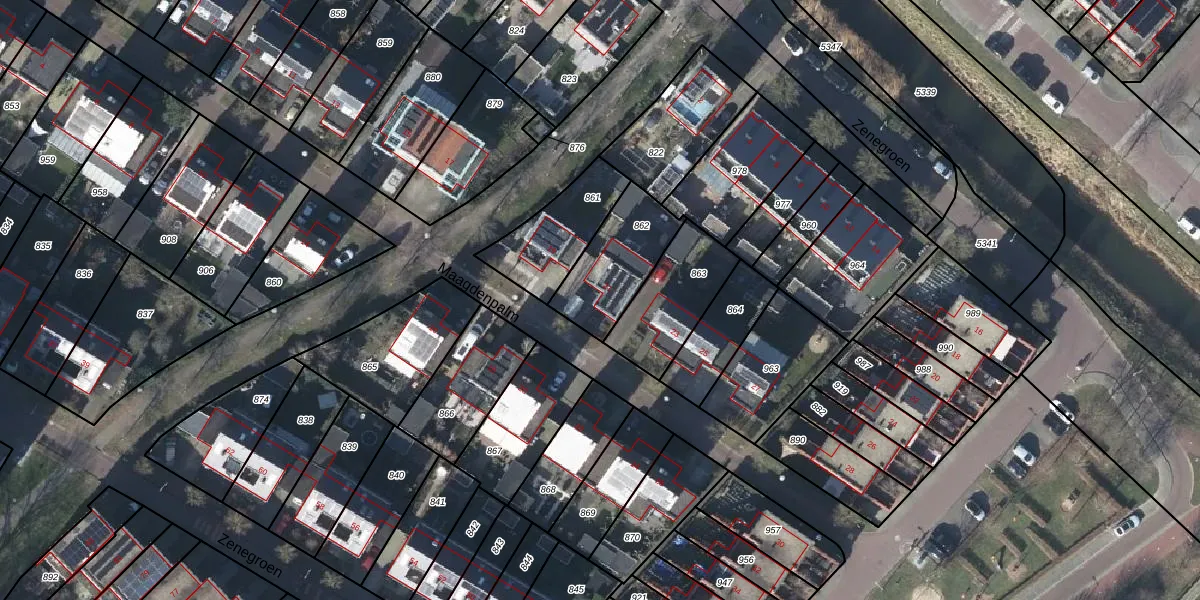 Gebruik de zoekbalk of klik op een perceel voor informatie over de adressen binnen dit perceel.