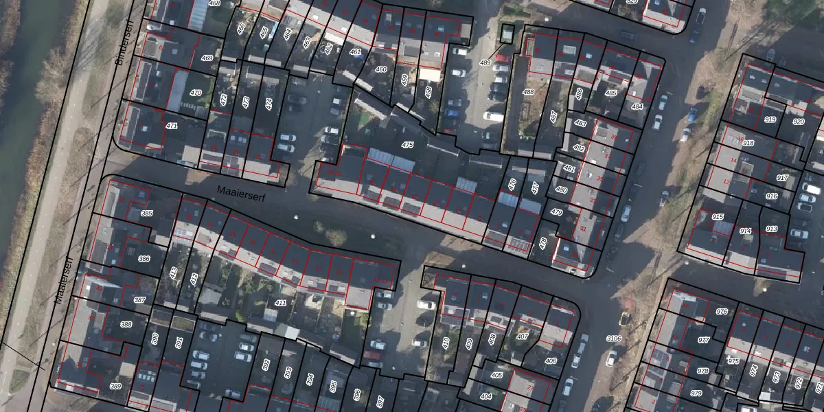 Maaierserf 12 is gelegen op kadastraal perceel AHM05AF475. Deze kadastrale aanduiding is uniek en wordt gebruikt door het Kadaster om eigendomsrechten en andere zakelijke rechten vast te leggen. Het perceel maakt onderdeel uit van de kadastrale gemeente Arnhem.