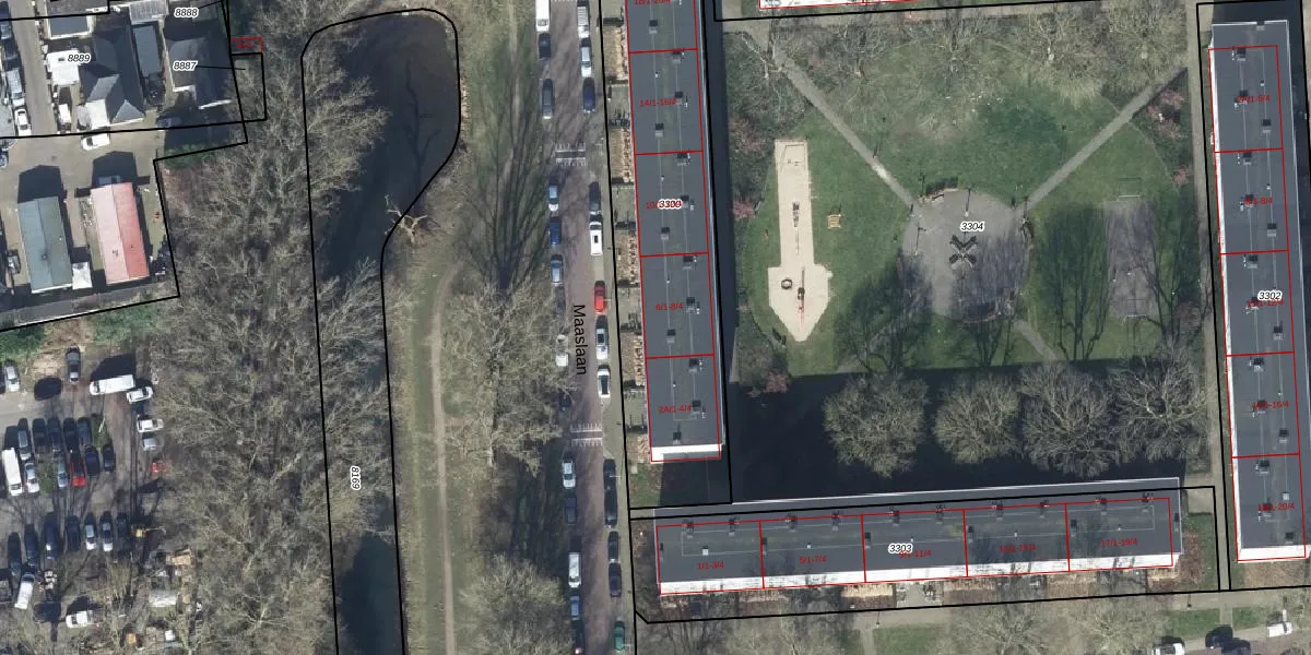 Maaslaan 6-1 is gelegen op kadastraal perceel AHM01T3300. Deze kadastrale aanduiding is uniek en wordt gebruikt door het Kadaster om eigendomsrechten en andere zakelijke rechten vast te leggen. Het perceel maakt onderdeel uit van de kadastrale gemeente Arnhem.