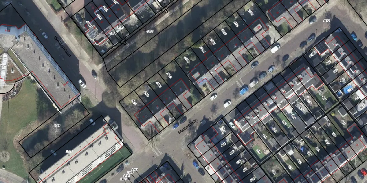 Gebruik de zoekbalk of klik op een perceel voor informatie over de adressen binnen dit perceel.