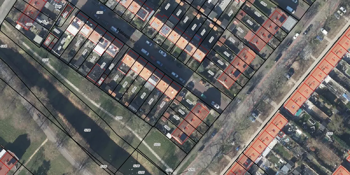 Het perceel waarop Malvastraat 1 staat heeft een oppervlakte van 195 m². Dit is een middelgroot perceel. De perceeloppervlakte wordt geregistreerd door het Kadaster. Gedetailleerde informatie over de maten van dit perceel kunt u vinden in het rapport Kadastrale kaart met maatvoering van Malvastraat 1.