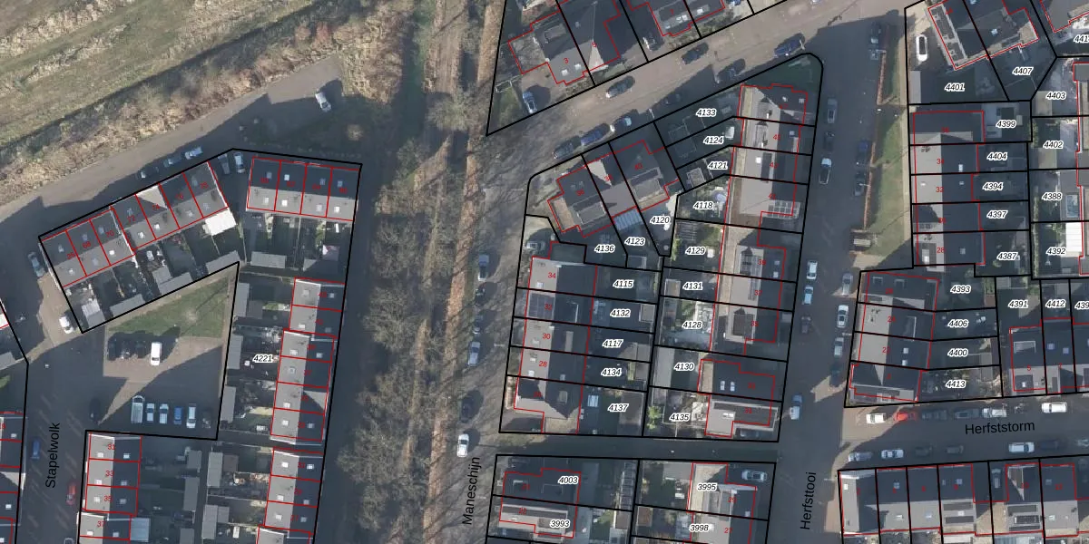 Gebruik de zoekbalk of klik op een perceel voor informatie over de adressen binnen dit perceel.