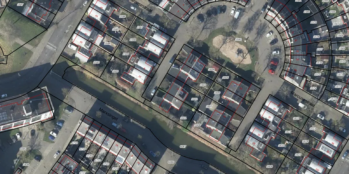 Het perceel waarop Marcusestraat 14 staat heeft een oppervlakte van 245 m². Dit is een middelgroot perceel. De perceeloppervlakte wordt geregistreerd door het Kadaster. Gedetailleerde informatie over de maten van dit perceel kunt u vinden in het rapport Kadastrale kaart met maatvoering van Marcusestraat 14.