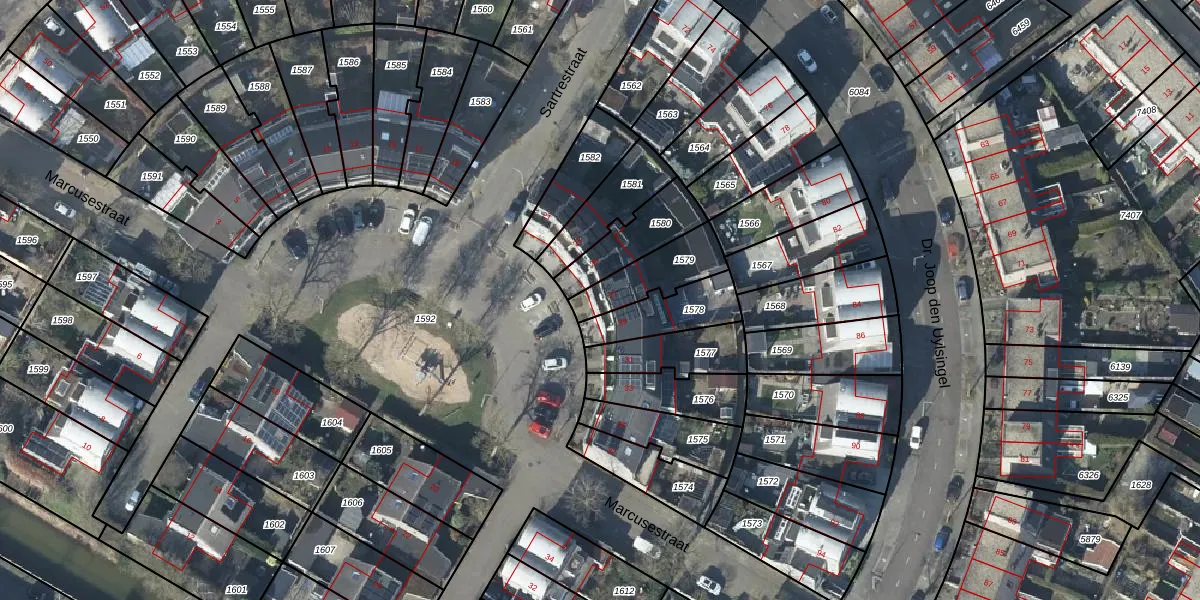 Het perceel waarop Marcusestraat 27 staat heeft een oppervlakte van 177 m². Dit is een middelgroot perceel. De perceeloppervlakte wordt geregistreerd door het Kadaster. Gedetailleerde informatie over de maten van dit perceel kunt u vinden in het rapport Kadastrale kaart met maatvoering van Marcusestraat 27.