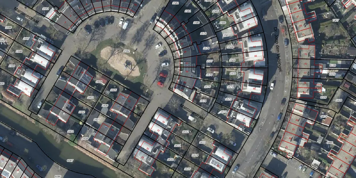 Het perceel waarop Marcusestraat 37 staat heeft een oppervlakte van 180 m². Dit is een middelgroot perceel. De perceeloppervlakte wordt geregistreerd door het Kadaster. Gedetailleerde informatie over de maten van dit perceel kunt u vinden in het rapport Kadastrale kaart met maatvoering van Marcusestraat 37.