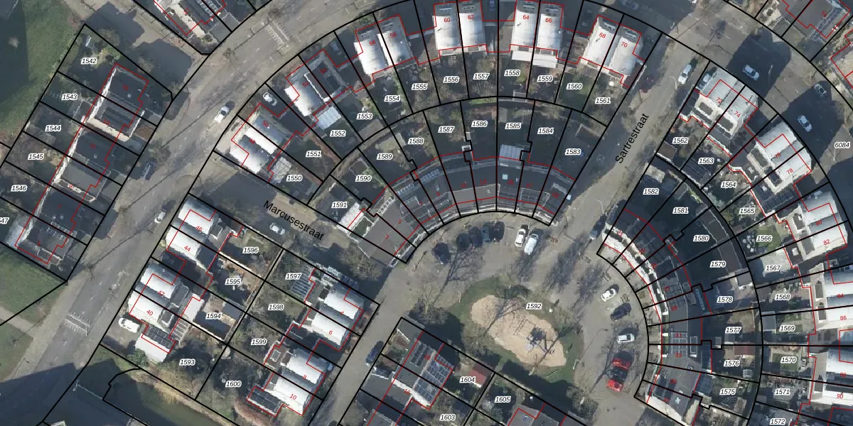 Het perceel waarop Marcusestraat 7 staat heeft een oppervlakte van 176 m². Dit is een middelgroot perceel. De perceeloppervlakte wordt geregistreerd door het Kadaster. Gedetailleerde informatie over de maten van dit perceel kunt u vinden in het rapport Kadastrale kaart met maatvoering van Marcusestraat 7.