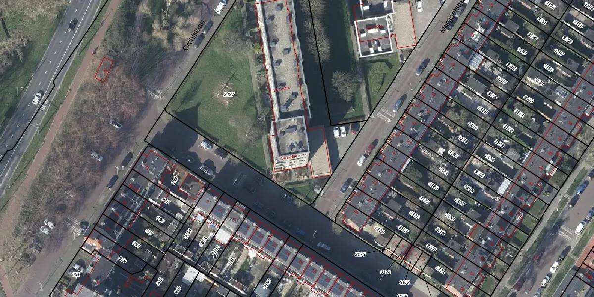 Het perceel waarop Margrietstraat 16-4 staat heeft een oppervlakte van 2715 m². Dit is een zeer groot perceel. De perceeloppervlakte wordt geregistreerd door het Kadaster. Gedetailleerde informatie over de maten van dit perceel kunt u vinden in het rapport Kadastrale kaart met maatvoering van Margrietstraat 16-4.