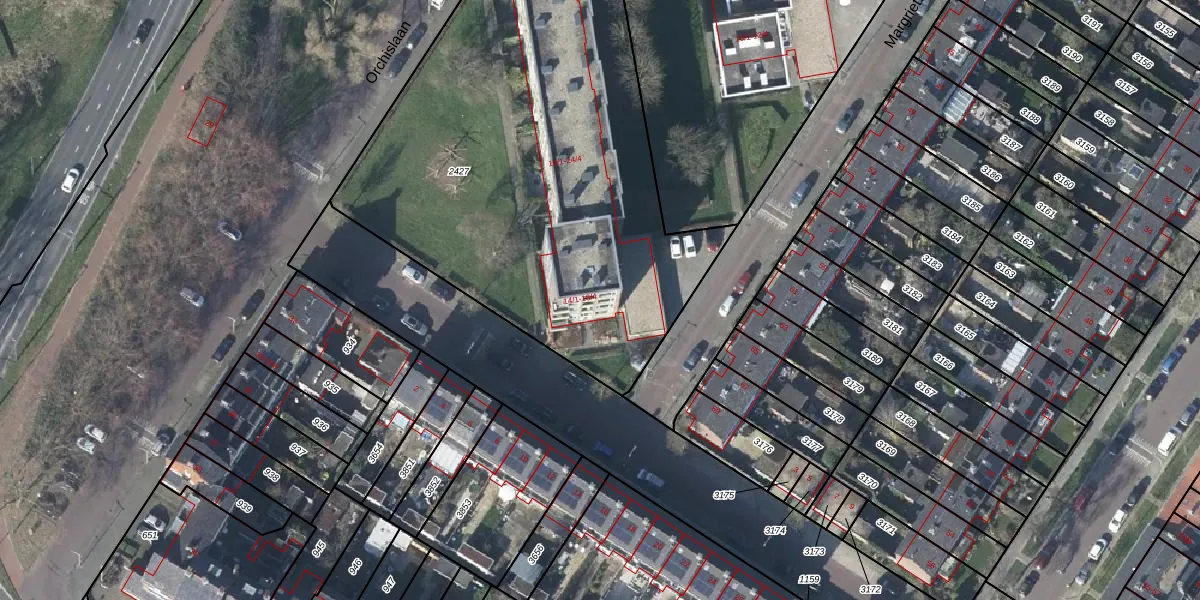 Het perceel waarop Margrietstraat 16-2 staat heeft een oppervlakte van 2715 m². Dit is een zeer groot perceel. De perceeloppervlakte wordt geregistreerd door het Kadaster. Gedetailleerde informatie over de maten van dit perceel kunt u vinden in het rapport Kadastrale kaart met maatvoering van Margrietstraat 16-2.