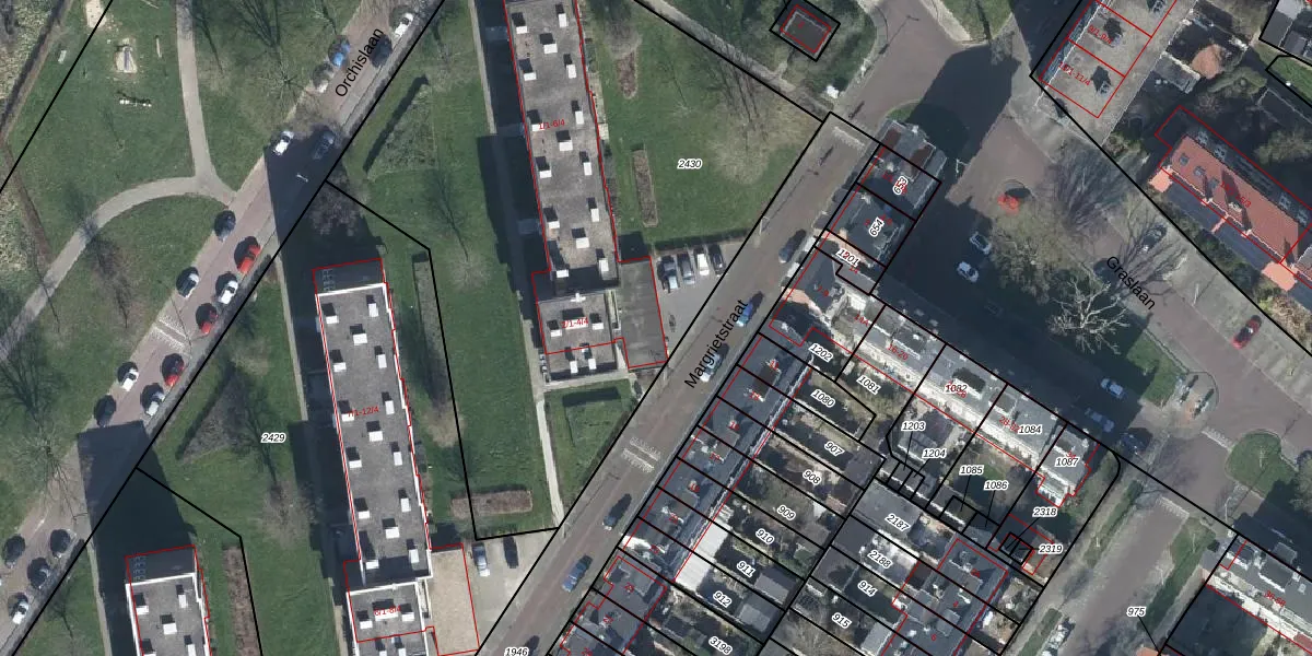 Het perceel waarop Margrietstraat 2-D staat heeft een oppervlakte van 3655 m². Dit is een zeer groot perceel. De perceeloppervlakte wordt geregistreerd door het Kadaster. Gedetailleerde informatie over de maten van dit perceel kunt u vinden in het rapport Kadastrale kaart met maatvoering van Margrietstraat 2-D.