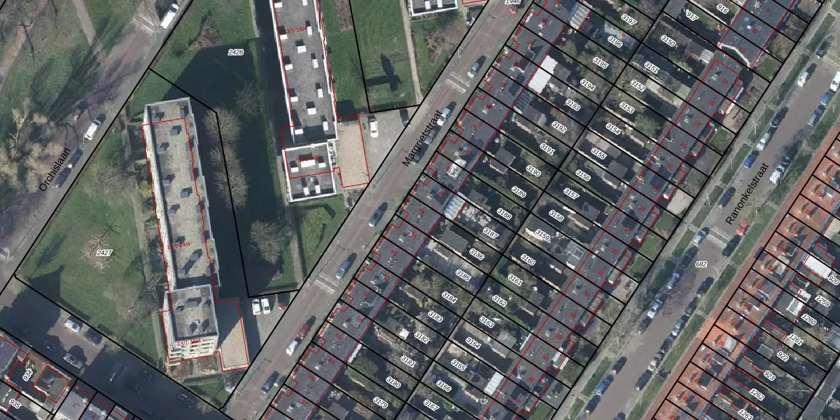 Margrietstraat 49 is gelegen op kadastraal perceel AHM01E3186. Deze kadastrale aanduiding is uniek en wordt gebruikt door het Kadaster om eigendomsrechten en andere zakelijke rechten vast te leggen. Het perceel maakt onderdeel uit van de kadastrale gemeente Arnhem.