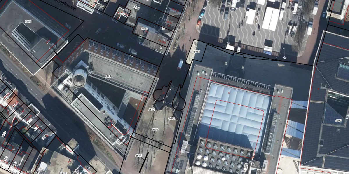 Het perceel waarop Markt 12 staat heeft een oppervlakte van 14,5 ha. Dit is een zeer groot perceel. De perceeloppervlakte wordt geregistreerd door het Kadaster. Gedetailleerde informatie over de maten van dit perceel kunt u vinden in het rapport Kadastrale kaart met maatvoering van Markt 12.