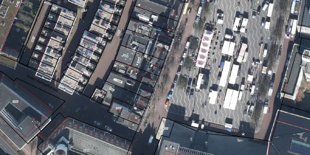 Het perceel waarop Markt 21-1 staat heeft een oppervlakte van 220 m². Dit is een middelgroot perceel. De perceeloppervlakte wordt geregistreerd door het Kadaster. Gedetailleerde informatie over de maten van dit perceel kunt u vinden in het rapport Kadastrale kaart met maatvoering van Markt 21-1.