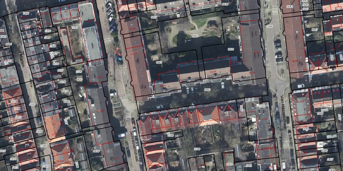 Het perceel waarop Marten van Rossemstraat 46 staat heeft een oppervlakte van 1065 m². Dit is een zeer groot perceel. De perceeloppervlakte wordt geregistreerd door het Kadaster. Gedetailleerde informatie over de maten van dit perceel kunt u vinden in het rapport Kadastrale kaart met maatvoering van Marten van Rossemstraat 46.